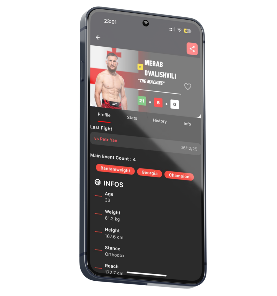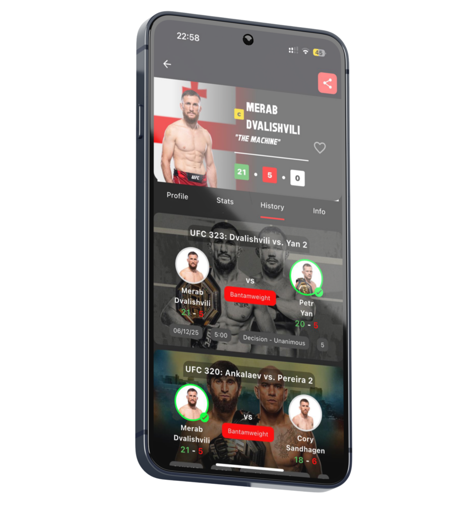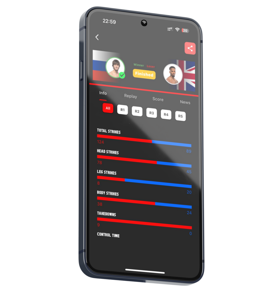 Get instant fight outcomes and round-by-round updates as they happen. Never miss a decisive moment again