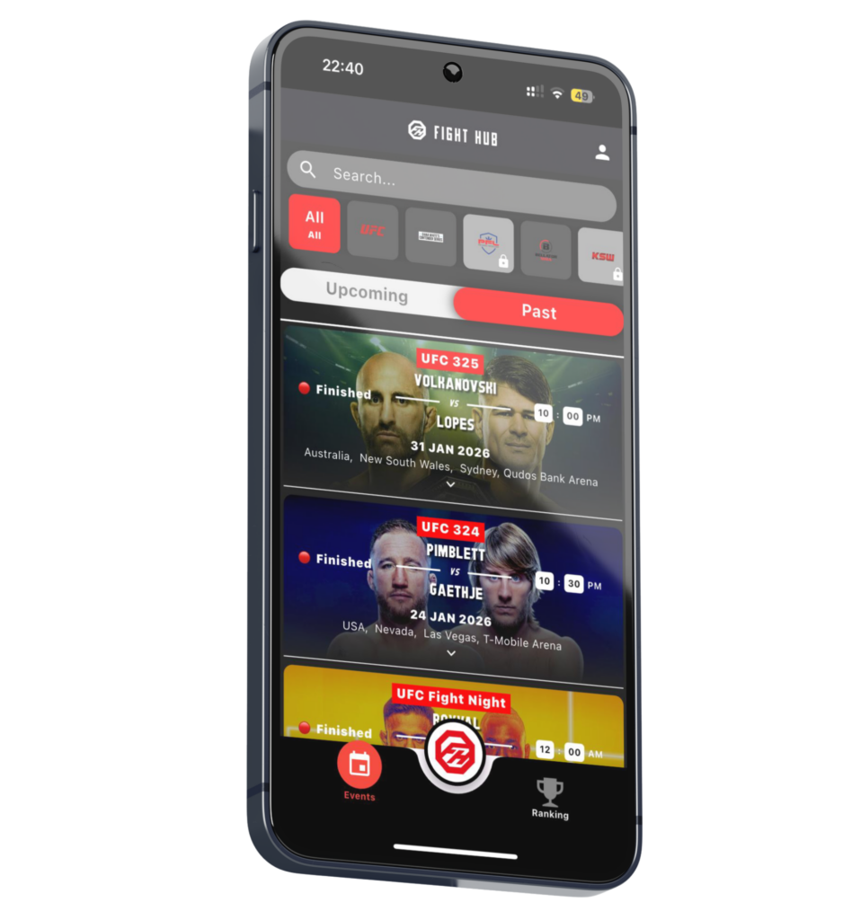 From a centralized events calendar to in-depth fighter stats, live updates, and expert predictions, our app is built to cover every aspect of the fight sports world. Whether you’re a passionate fan, an analyst, or just getting started, you’ll find all the tools you need to stay informed, engaged, and ahead of the game. All in one easy-to-use platform.
