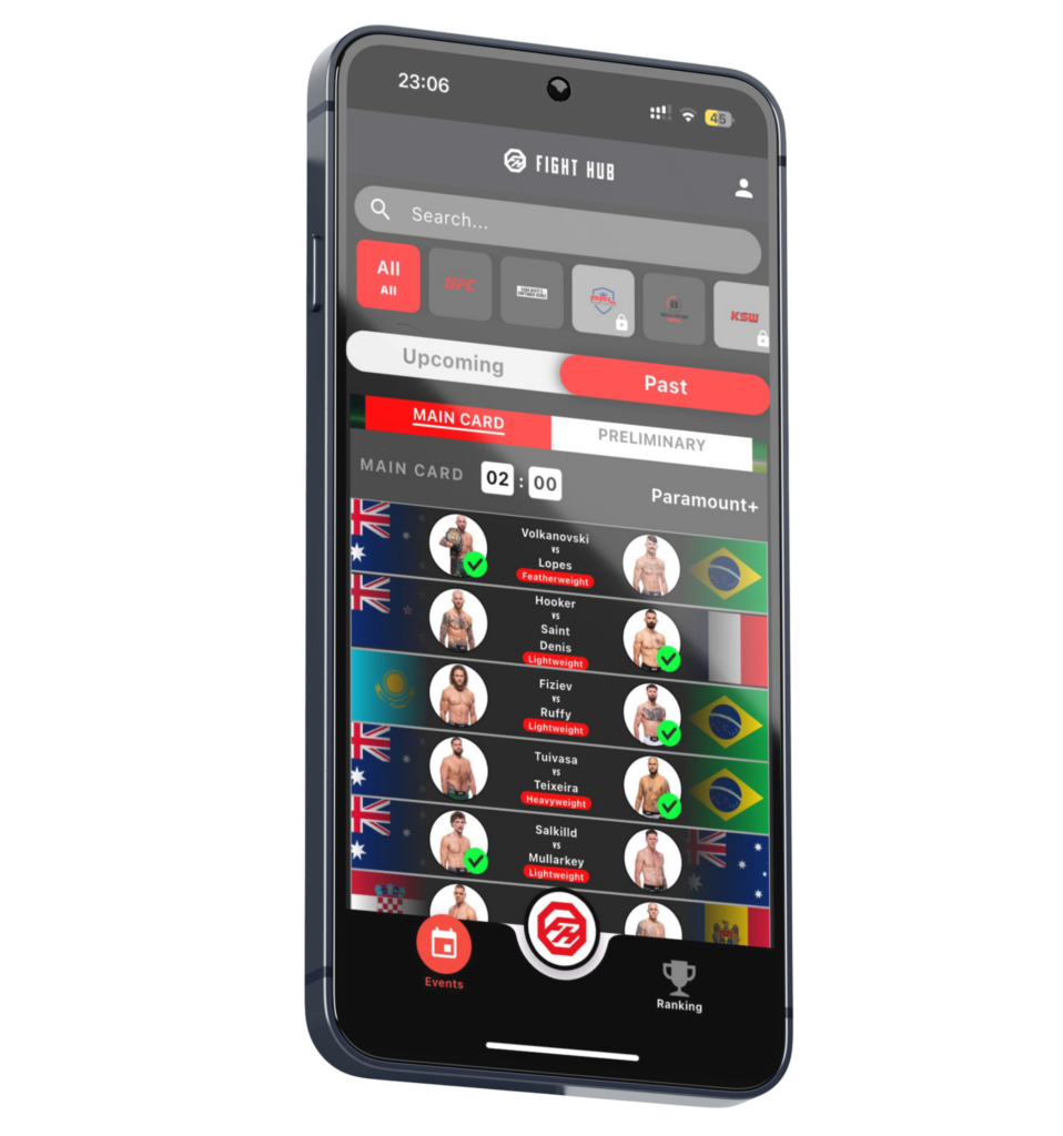 Stay on top of all the fights with a unified calendar that puts all combat sports events at your fingertips