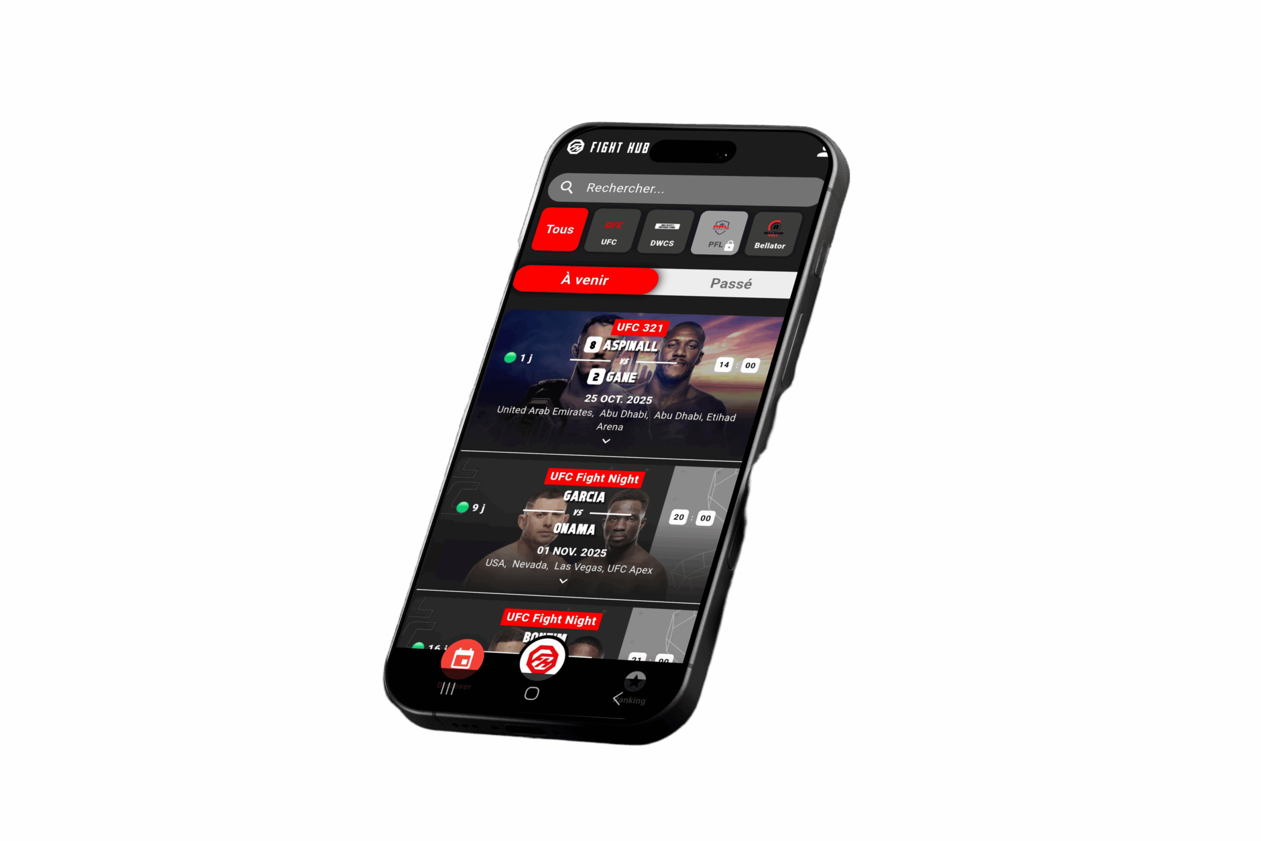 Stay on top of all the fights with a unified calendar that puts all combat sports events at your fingertips.